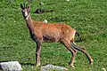 The Apennine chamois (Rupicapra pyrenaica ornata)[2] is a subspecies of the Pyrenean chamois, a goat-like mammal found in the mountains of Europe. Both male and female have hook-shaped horns that slightly curl backwards and grow little by little each year, never falling off. Their coats are light brown in the summer and darker in the winter, with a light colored mark on the throat. There are also two darker bands on their flanks.