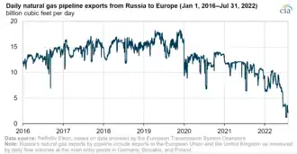 - ↑ "Russia is pumping a lot less natural gas to Europe all of a sudden — and it is not clear why – Gas Watch". 24 August 2021. Retrieved 15 September 2021.