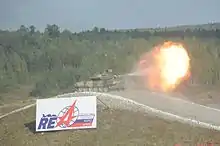 Exhibit rehearsal at Staratel test range on September 6, 2011, with T-90S main battle tank in the background