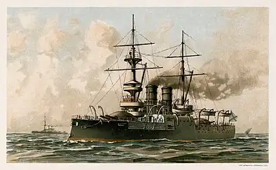 Dvenadsat Apostolov (Russian: Двенадцать апостолов—"Twelve Apostles") was a pre-dreadnought battleship built for the Imperial Russian Navy, the sole ship of her class. She entered service in 1893 with the Black Sea Fleet, but was not fully ready until 1894. The ship participated in the failed attempt to recapture the mutinous battleship Potemkin in 1905. Decommissioned and disarmed in 1911, Dvenadsat Apostolov became an immobile submarine depot ship the following year. The ship was captured by the Germans in 1918 in Sevastopol and was handed over to the Allies in December. Lying immobile in Sevastopol, she was captured by both sides in the Russian Civil War before she was abandoned when the White Russians evacuated the Crimea in 1920. Dvenadsat Apostolov was used as a stand-in for the title ship during the 1925 filming of The Battleship Potemkin before she was finally scrapped in 1931.
