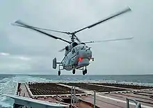 On 3 September 2011 the destroyer conducted the first underway landings tests for the new Ka-52K helicopter.[3]