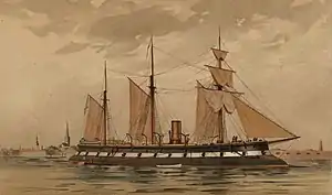 The Russian ironclad Ne Tron Menia (Russian: Не тронь меня) was the second of the three Pervenets-class broadside ironclads built for the Imperial Russian Navy during the mid-1860s. She joined the Baltic Fleet upon completion and never left Russian waters. Beginning in 1870 the ship was assigned to the Gunnery Training Detachment and was frequently rearmed. Ne Tron Menia was placed in reserve and hulked a decade later. In 1905 the ship was disarmed and she was sold in 1908. After the end of the Russian Civil War, she was acquired by the Soviets before being sold to a factory in 1925. The ship was sunk in the Siege of Leningrad during World War II and was scrapped after she was salvaged in 1950.