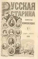 Russkaia Starina (Russian: Русская старина, lit.'Russian Antiquity', pronounced /ˈruskəjə stərʲɪˈna/) was a Russian history journal published monthly in St. Petersburg by amateur historian Mikhail Semevsky and his successors between 1870 and 1916.[1] Its authors included Ivan Zabelin, Dmitry Ilovaysky, Nikolai Karlovich Shilder, and Mykola Kostomarov. A collected edition was reprinted in 2008.