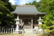 According to legend, Ryūfuku-ji was founded in the Heian period by the priest Kūkai. By tradition Kūkai carved the statue of Fudō-myōō located in the Hondō of the temple.[1] The Fudō-myōō has adherents among locals of the area and the fisherman of the Kujukuri Coast.[2] In the Sengoku period (1467 – 1573) the Shimada clan built Mibiro Castle to the south of the temple, but it and the temple were completely destroyed by fire as part of local conflicts during the period.