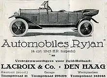 Ryjan was a make of French automobile produced by the Grillet company between 1920 and 1926.[1][2][3][4] The factory was established in what was then a small town, a short distance to the west of Paris, called Chatou. In 1925 production was relocated to Nanterre in the west of the country.