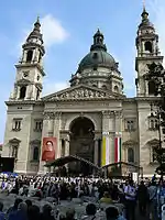 On 17 September 2006 Salkaházi was beatified in a proclamation by Pope Benedict XVI, read by Cardinal Péter Erdő during a Mass outside St. Stephen's Basilica in Budapest,[8] which said in part, "She was willing to assume risks for the persecuted ... in days of great fear. Her martyrdom is still topical ... and presents the foundations of our humanity." This is the first beatification to take place in Hungary since that of King Stephen in 1083 along with his son Imre and the Italian Bishop Gerard Sagredo, who were instrumental in converting Hungary to Christianity.[8] If Salkaházi is canonized, she will be the first non-royal Hungarian female saint.[8][10]