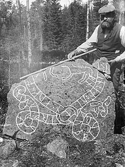 - ↑ Oehrl, Sigmund (2010). Vierbeinerdarstellungen auf Schwedischen Runensteinen: Studien zur Nord Germanischen Tier- und Fesselungsikonografie (in German). Walter de Gruyter. p. 33. ISBN 978-3-11-022742-0.