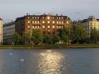 Vester Søgade is dominated by Vestersøhus which was designed by Kay Fisker and C. F. Møller and completed in 1939. With its balcony-bay window concept, it became a model for later Danish residential architecture.[4] The building was listed in 1994.[5]