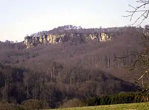 - The Hohenstein plateau north of Hessisch Oldendorf with rock faces and deep clefts.