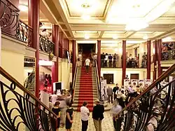 The theatre stage has a width of 14 metres, depth of 10 metres and height of 4.90 metres, with an orchestra pit added newly. There are 14 dressing rooms that were built without changing the architecture of the building. The audience capacity of the opera house is 570 seats.[7] The ballroom on the second floor can accommodate 500 guests.[2]