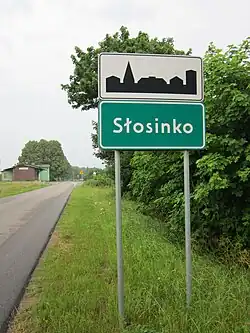 Słosinko [swɔˈɕiŋkɔ] is a village in Gmina Miastko, Bytów County, Pomeranian Voivodeship, in northern Poland, on the border with West Pomeranian Voivodeship. It lies approximately 25 kilometres (16 mi) south-west of Bytów and 73 km (45 mi) south-west of Gdańsk (capital city of the Pomeranian Voivodeship).