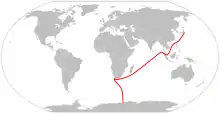 In November 1939, the Imperial Japanese Navy requisitioned Chiryo Maru for national service. In February 1940, she was renamed Sōya, a name previously held by the former Varyag, an armoured cruiser seized from Imperial Russia, but which Japan returned in 1916. The icebreaker Sōya was assigned duties as an auxiliary ammunition supply and survey vessel. In May 1942, she participated in the Battle of Midway (Operation "MI"), where she was assigned to Miyamoto Sadachika's 16th Minesweeper Unit (along with auxiliary minesweepers Showa Maru No. 8, Tama Maru No. 3, Tama Maru No. 5, Showa Maru No. 7; submarine chasers CH-16, CH-17, and CH-18; cargo ships Meiyo Maru and Yamafuku Maru).[5] She survived the Second World War, albeit with multiple close calls. In January 1943 Sōya was attacked by USS Greenling. The torpedoes either missed or proved to be duds: Sōya's crew hoisted one undetonated torpedo onto the deck in celebration. In the February 1944 Operation Hailstone, aircraft from TF58 attacked the Japanese anchorage at Truk, sinking 41 Japanese vessels. Sōya escaped, but ran aground as she did so; 10 crewmembers were killed.[2] On 26 June 1945 the submarine USS Parche attacked a convoy escorting Sōya and other transport ships from Yokohama to Hakodate, sinking an escort vessel and disabling one transport ship. On 9 August 1945, Sōya was at anchor in Onagawa Bay as part of a flotilla with other vessels when British bombers attacked from the air, sinking at least two of them.[2]