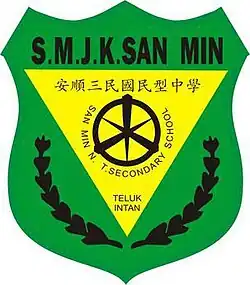 Sekolah Menengah Jenis Kebangsaan San Min (Chinese: 三民国民型中学,abbreviated as SMJK San Min or SMSM), which literally translates to San Min National Type Secondary School (or simply San Min Secondary School), is located in Teluk Intan in Perak, Malaysia. It was first established in 1929 and has since survived the many changes and hardships, including the Japanese Occupation, and attained many achievements. It was then classified as a National Type Secondary School after the enforcement of the Malaysian Education Act 1957. It was first located beside Jalan Woo Saik Hong in the town area. In 1998, after receiving a plot of land from a generous Indian donor, the school had then moved to its current location beside Jalan Merbok (formerly Jalan Brewster) off Jalan Sultan Abdullah.