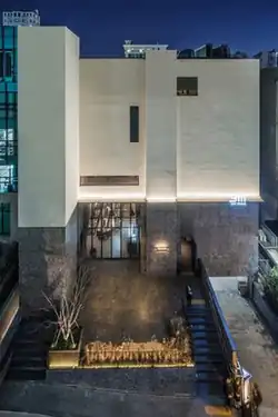 Each floor consists of a space with a particular concept; The Playground on the first and second floors operates as a lunch and dessert café in the morning and a casual tapas restaurant in the evening.[10] After 10 PM KST (UTC+09:00) on Thursdays, Fridays, and Saturdays, the space will transform into a DJ-invited lounge. It is expected that it "satisfies both the mouth and the eyes" as it transforms into an "inviting lounge to provide unique pleasure", as well as a space to see various contents such as ceiling media images and SM Entertainment artists' holograms.[11] The Penthouse on the third and fourth floors, which is operated on a pre-booking basis, employs the concept of Seoul Style Tapas to the course menu. The space will be showing a "unique dining culture" where visitors can taste menus from around the world such as Korean, Chinese, Japanese, and Western food when ordering the course.[12] The fifth floor is composed of the Vertical Garden, allowing visitors to relax in the city center while adding variety.[13] In addition, the restaurant introduces the "highest level" of audio & media sound facilities and soundproofing facilities according to the function of the space by floor, an oxygen generator and a water vein breaker, and a heating and cooling system.[14] In winter, rooms use the ondol principle and provide a cool space without air conditioning, similar to a wine cellar cave in a winery in summer.[15]