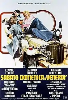 Saturday, Sunday and Friday, originally titled Sabato, domenica e venerdì, is a 1979 Italian anthology comedy film directed by Castellano & Pipolo, Pasquale Festa Campanile and Sergio Martino.[1][2][3]