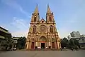 With financial support from Napoleon III and donations from French Catholics,[3] Bishop Philippe François Zéphirin Guillemin, M.E.P. (明稽章), the first vicar apostolic of Guangdong, oversaw the construction project. A French architect from Nancy, Léon Vautrin,[4] was asked to design the cathedral, in collaboration with Charles Hyacinthe Humbert, also from Nancy. Humbert and another architect from Paris, Antoine Hermitte, who succeeds him at a later time, both travelled to China to oversee the construction of the cathedral.[5] Bishop Guillemin did not get to see completion of the cathedral, as he died at the age of 72 in Paris in 1886, two years before the cathedral was finished. The construction was supervised by his successor, Bishop Augustin Chausse, M.E.P. (邵斯).