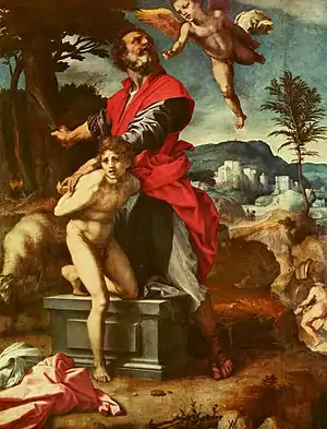 Sacrifice of Isaac is a work by the Italian Renaissance painter Andrea del Sarto, existing in three versions at the Gemäldegalerie Alte Meister in Dresden (213 x 159 cm; 1527–1529[1][2]), the Cleveland Museum of Art (178 x 138 cm[3]) and the Museo del Prado (98 x 69 cm; c.1527–1530[4]).