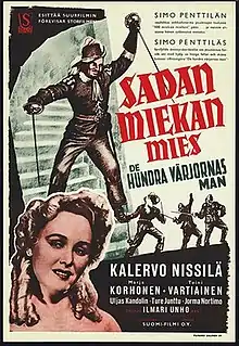 Sadan miekan mies ("The Man of a Hundred Swords" in English) is a Finnish historical adventure comedy film from 1951 directed by Ilmari Unho. The film takes place in the 1630s in the Finnish county Varsinais-Suomi, and tells the story of a heroic swordsman on an assignment from the king, and on their journey, the swordsman and he's partner encounter foes and damsels. The film was first shown on television on 7 March 1964.[1]