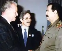 Al-Zubaydi was a frequent fixture beside Saddam Hussein on television screens across the world and was present at several high-level meetings between Saddam and foreign dignitaries during the Iran–Iraq War, Iraq's invasion of Kuwait, the 1991 Gulf War and the months preceding the U.S. invasion of Iraq in 2003. A low-ranking Iraqi Ba'ath Party member,[1] al-Zubaydi was witness to some of Saddam's most crucial talks, including a controversial July 25, 1990 meeting between Saddam and then-U.S. Ambassador April Glaspie, just days prior to Iraq's invasion of Kuwait. He also translated Saddam's widely broadcast remarks during the Iraqi President's August 23, 1990 meeting with Western hostages to whom Iraq had refused exit visas as the crisis in the Persian Gulf emerged. During those remarks, al-Zubaydi can be heard famously asking if a young British boy named Stuart Lockwood is getting his milk while Saddam ruffles the young boy's hair.