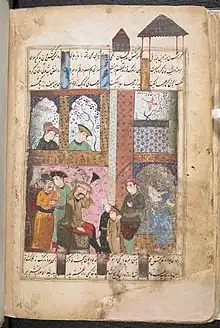 Imam-Quli Khan taking leave of his sons before they were executed. From a Jarūnnāmeh by Qadrī. Isfahan style, dated 1697
