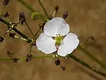 Sagittaria papillosa, the nipplebract arrowhead,[2] is a perennial plant species growing up to 120 centimetres (47 inches) tall. Petioles are triangular in cross-section, the leaf blade very narrowly elliptical to ovate, not lobed. The species is distinguished from others in the genus by having bumps (papillae) resembling nipples on the flower bracts.[3][4]