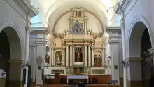 Parish Church of San Sebastián Mártir, built in the s. XVI, by order of Archbishop Juan de Ribera who ordered the demolition of the mosque and dedicate the new church to San Sebastián. At this time, only the presbytery, the transept and the next section (S. Francisco and Virgen de los Dolores) were built. The most important reforms are from 1850 and the beginning of the s. XX, coinciding with the erection as vicarage in 1852 and the creation of the parish in 1902. The church has a rectangular plan with a central nave and chapels between buttresses. On the sides of the presbytery are the communion chapel and the sacristy, on which the choir is located. At the bottom of this we find the corridor and the door, currently bricked up, leading to the site that was called "the grave."