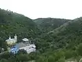 The "Holy Trinity" Monastery of Saharna,[1] situated about 110 km north of Chișinău, on the west side of the Nistru River, is considered to be one of the biggest centres for religious pilgrimages in Moldova. Here can be found the unique relics of the Blessed Macarie, and on the top of the high cliff, according to a legend, there is a footprint of St. Maria, the Mother of Jesus. The legend says that a monk from the monastery once saw the shining figure of Saint Maria on the top of a rock. When reaching that spot the monk saw a mark of a footstep on the ground.