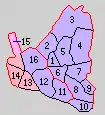1. Isesaki, 2. Misato, 3. Akabori, 4. Azuma, 5. Uehasu, 6. Moro, 7. Uneme, 8. Gōshi, 9. Sakai, 10. Shima, 11.Toyouke, 12.Nawa, 13. Shibane, 14. Tamamura, 15. Jōyō, 16. Miyagō
