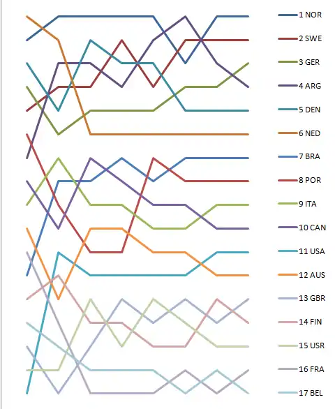 Graph showing the daily standings in the Dragon during the 1952 Summer Olympics