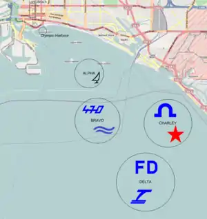 According to the IOC statutes the contests in all sport disciplines must be held either in, or as close as possible to the city which the IOC has chosen. The sailing conditions off the coast of Los Angeles are very suitable for Olympic sailing. A total of four race areas were created in the Pacific off the coast of Long Beach.