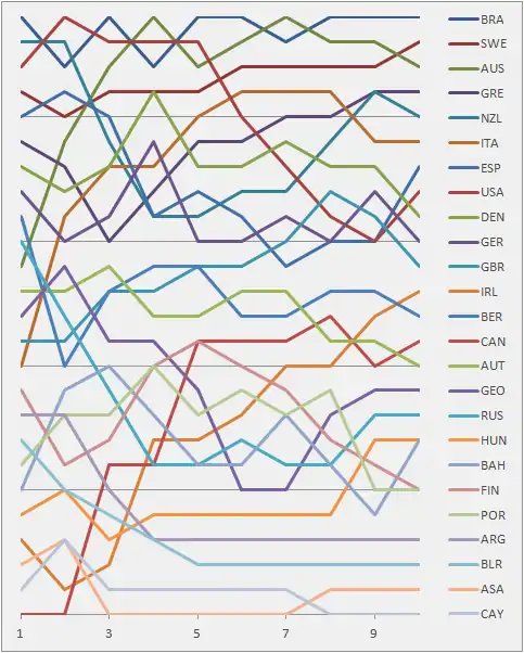 Graph showing the daily standings in the Star during the 1996 Summer Olympics