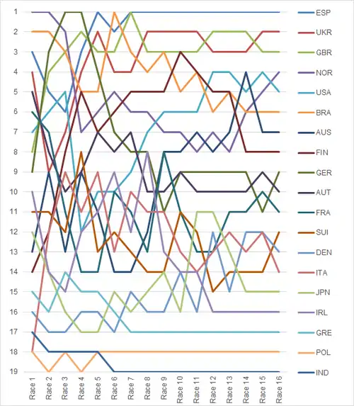 | Pos. | Pts. | Pos. | Pts. | Pos. | Pts. | Pos. | Pts. | Pos. | Pts. | Pos. | Pts. | Pos. | Pts. | Pos. | Pts. | Pos. | Pts. | Pos. | Pts. | Pos. | Pts. | Pos. | Pts. | Pos. | Pts. | Pos. | Pts. | Pos. | Pts. | Pos. | Pts. | ||||||