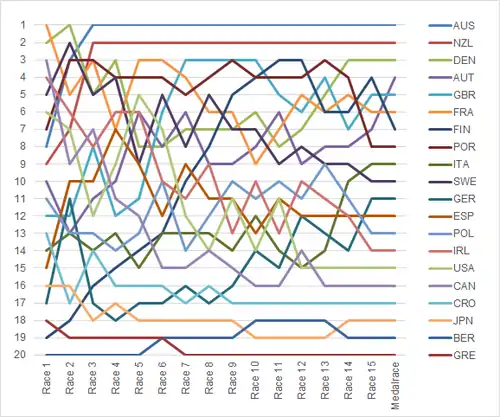 | Men's 49er | ● | 2 | 2 | 2 | 2 | 3 | Spare day |