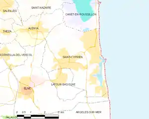 Saint-Cyprien (French pronunciation: [sɛ̃ sipʁijɛ̃] ; Catalan: Sant Cebrià de Rosselló) is a commune in the Pyrénées-Orientales department in southern France.
