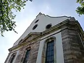 Due to structural weaknesses, the church was completely rebuilt in the 18th century, the new church being inaugurated in 1765. The Church is notable for its Baroque interior, which includes a white and gold altar. The galleries are decorated with twenty-three biblical scenes by the Strasbourg painter Pierre Joseph Noël, painted in 1767. [5]