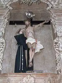 There are many legends associated with the Church of Saint Francis. One of them refers to the statue that adorns its main altar stating that it miraculously appeared from nowhere.[12] Legend adds that the bell ringer was removed from the belfry, arrested, and flogged for the crime he had "committed," but this narrative does not have any historical basis, although it was in fact a custom to remove the clapper from the bell and temporarily chain it when its operator died in activity.[13]