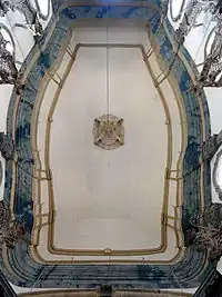Unlike the apse, the altars of the nave were never gilded, and at some point were painted white.[2] The ceiling of the nave was also not decorated, and only presents a central medallion in relief from which hangs a light fixture.