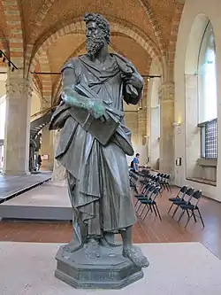 Saint Luke is a 2.73 m high bronze statue of Luke the Evangelist by Giambologna, commissioned by the Arte dei Giudici e Notai and completed in 1597–1602. One of a cycle of fourteen commissioned by the guilds of Florence for the external niches of Orsanmichele, it is now in the Museo di Orsanmichele, although a replica fills its original niche.
