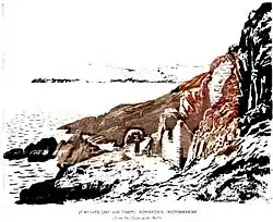 There is a Kirkmaiden both in the Rinns of Galloway and also on the other side of Luce Bay in the parish of Glasserton near Monreith in the Machars – both in Wigtownshire in Scotland. A legend relates how the saint with her nuns is said to have travelled from the one location to the other across Luce Bay, using a rock as a boat.[1]
