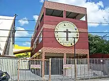 The temple was built on land donated by the Congregation of the Carmelite Sisters of Divine Providence that belonged to Colégio Angélica (English: Angélica college).[7] The three modules that make up the roof were built with steel donated by Usiminas. Still in the late 1980s, the parish acquired all 1,300 chairs of the old Cine Marrocos, bought and then donated by the faithful themselves after the closing of the movie theater.[8]