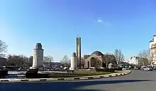 The Église Sainte-Jeanne-de-Chantal has a Byzantine style, which had become popular in Western Europe after the rediscovery of ancient Hagia Sophia in Constantinople.[2] It features a large dome.[1] The structure is concrete, and the walls are covered in "reconstituted stones".[2] In 1962 Robert Juvin created a bas-relief Bienheureuse Vierge de la Merced for the facade of the church. The bell tower is separate from the church and dominates the square.[4]