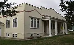 It was designed and built by local contractor Henry Stuckenhoff. It is a rare Mission Revival style building for northeast Nebraska.[2]