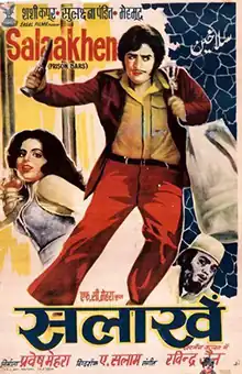 Salaakhen is a 1975 Hindi movie produced by Parvesh Mehra and directed by A. Salaam. The film stars Shashi Kapoor, Sulakshana Pandit, A. K. Hangal, Mehmood, Amrish Puri and Ramesh Deo. The film's music is by Ravindra Jain. The rights to this film are owned by Shah Rukh Khan's Red Chillies Entertainment.