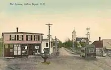 The area was first settled in 1652. As early as 1736, Salem was the "North Parish" of Methuen, Massachusetts, or "Methuen District". In 1741, when the boundary line between Massachusetts and New Hampshire was fixed, the "North Parish" became part of New Hampshire, and was given the name "Salem", taken from nearby Salem, Massachusetts. The town was incorporated in 1750 by colonial governor Benning Wentworth.[5] The meetinghouse of the old north parish, erected in 1738, still stands, eventually becoming the town hall of Salem before it was turned into the Salem Historical Society museum.[6]
