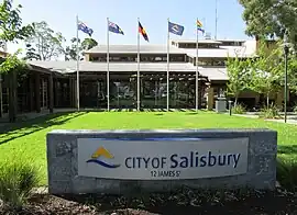 Salisbury grew slowly from a town population numbered between 400 and 500 in 1881.[4] The District Council of Salisbury was established in 1933 (amalgamating Yatala North south of the Little Para and Munno Para West to the north)[13] which centered local governance of the area on the main population centre between Enfield and Gawler, the township of Salisbury.[14]