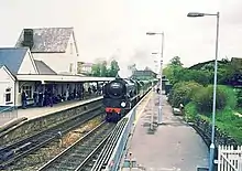 Most of the line remains open and carries South Western Railway's hourly services from London Waterloo to Exeter St Davids.[6] The section from Wilton to Templecombe has reverted to single track with passing loops at Tisbury and Gillingham. Of the original eight stations (excluding Salisbury), only those at Tisbury, Gillingham, Templecombe, and Sherborne remain open. Templecombe was closed from 1966 to 1983 and nothing remains of the original station.[7]