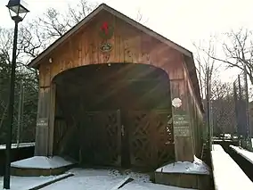 Salmon River State Forest is a Connecticut state forest located in the towns of Hebron, Marlborough, Colchester, East Haddam, and East Hampton. It includes 1,300 acres (530 ha) leased from the United States government.[4] The forest features Comstock's Bridge, the only remaining covered bridge in eastern Connecticut, which spans the Salmon River near Route 16 in East Hampton.[5]
