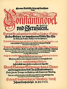 Ein newe Reiss Beschreibung auss Teutschland nach Constantinopel und Jerusalem (1608) title page