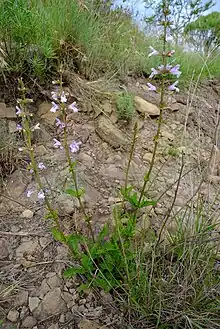 Salvia aurita (African valley sage) is a herbaceous perennial shrub native to South Africa (the Cape Provinces, KwaZulu-Natal and the Northern Provinces) and Eswatini.[1] It is found growing on streambanks. It grows to 1.2 m (3.9 ft) tall, with numerous blue, white, and lilac flowers growing in whorls on short racemes.[2]