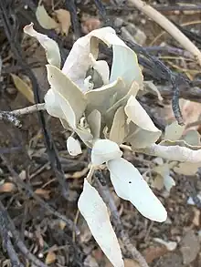 Salvia vaseyi, the scallop-leaf sage,[1] bristle sage or wand sage, is a perennial native to the western Colorado Desert. Flowers grow in compact clusters on 1 to 2 ft (0.30 to 0.61 m) spikes. The .5 inches (1.3 cm) flowers are white, with whitish bracts, calyx, and leaves, blooming from April to June. The specific epithet was named after botanist George Vasey or for his son, George Richard Vasey, who collected the type specimen.[2][3]